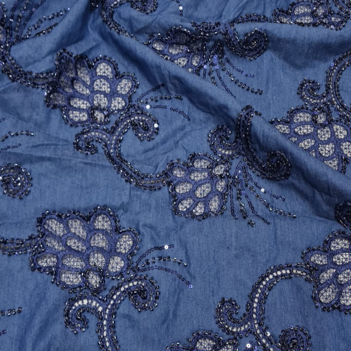 Elevate your fashion game with our Sequin Denim Cutdaana Fabric, a perfect blend of style, sparkle, and strength. Crafted on premium-quality denim base, this fabric features intricate sequin and cutdaana embroidery that adds a rich, luxurious texture and a glamorous finish. Ideal for designer blouses, party wear gowns, jackets, and lehengas, this fabric brings a bold statement to every outfit. Its sturdy denim feel combined with shimmering embellishments makes it both trendy and durable, perfect for modern festive and wedding looks.